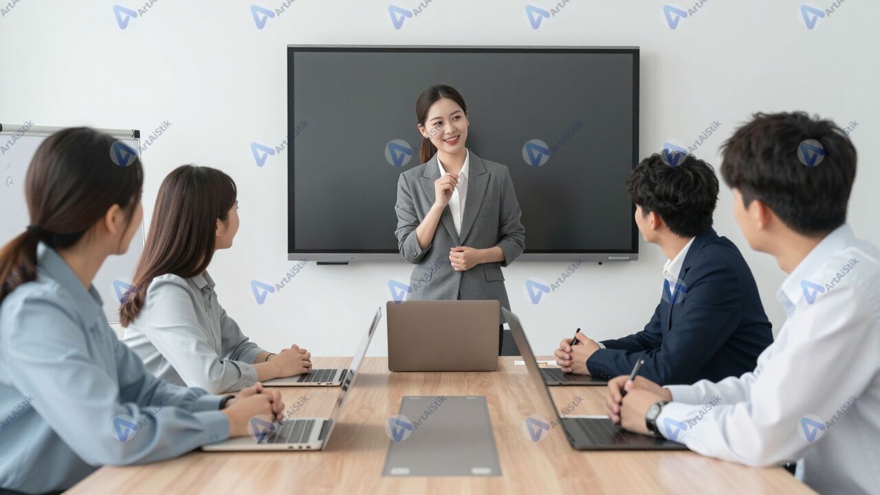 Совещание в переговорной, доска, люди.