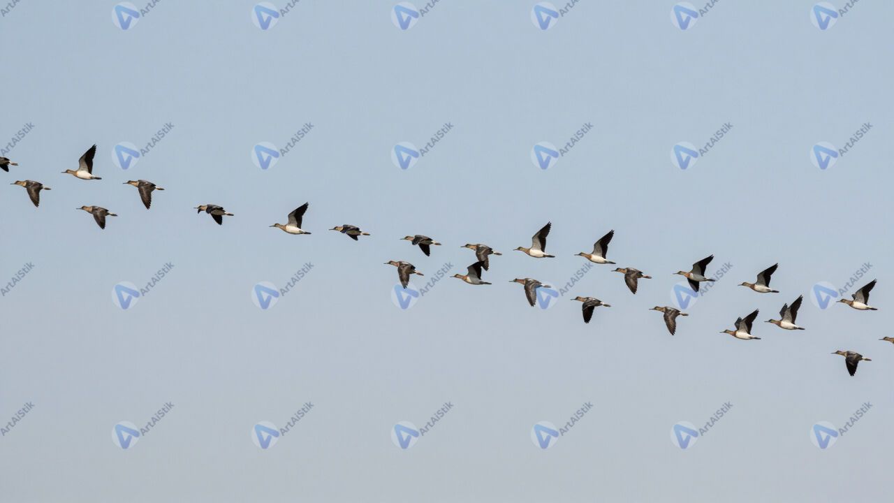 Миграция птиц весной, стая в небе, клин.