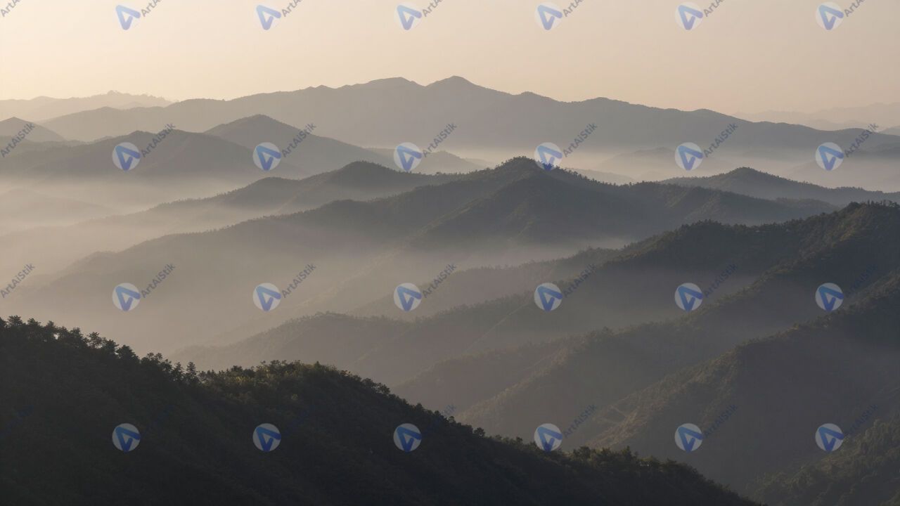 Туманы в горах на рассвете, слои долин.