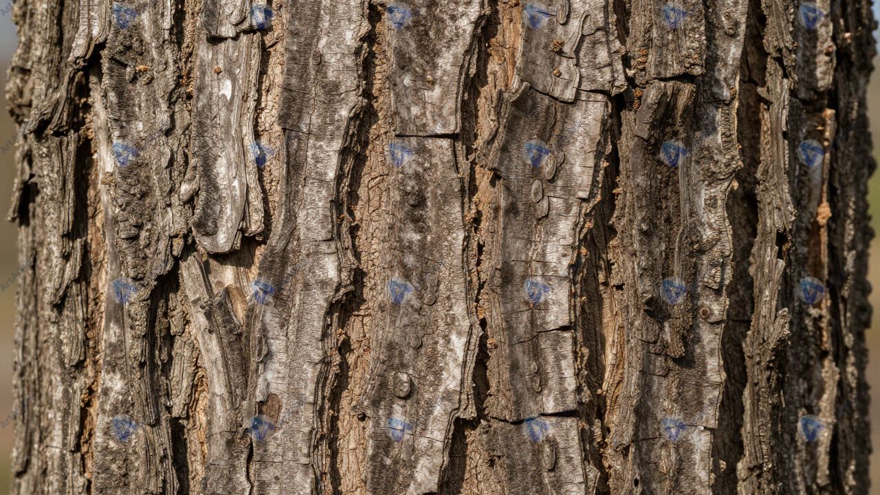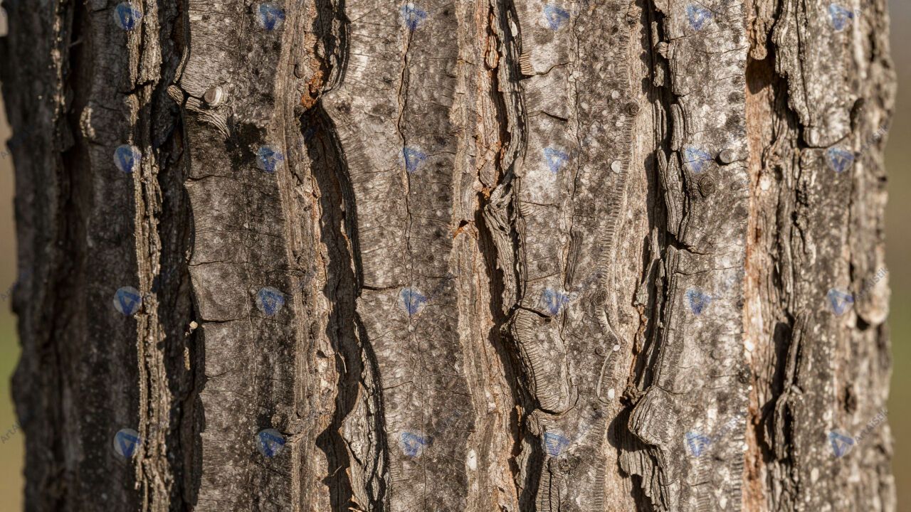 Кора дуба крупным планом, глубокие трещины, текстура.