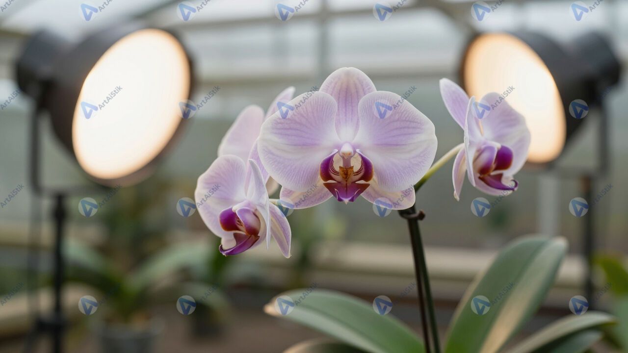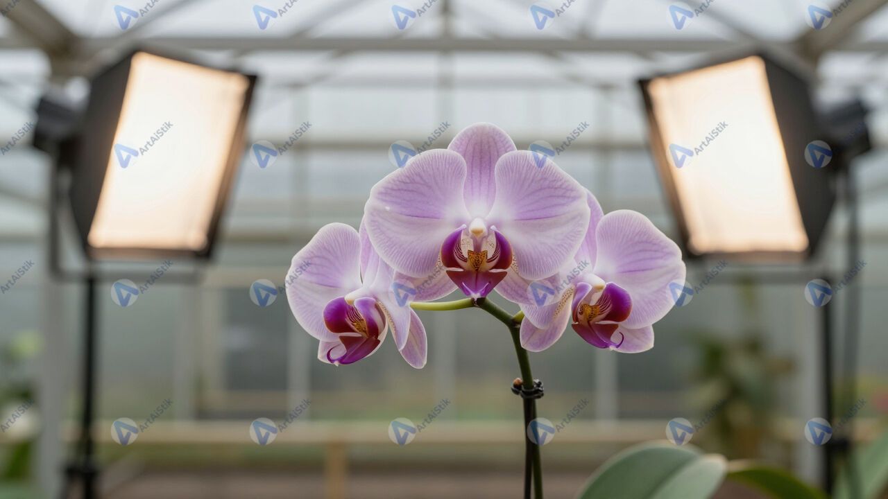 Орхидея в теплице, экзотический цветок, студийный свет.