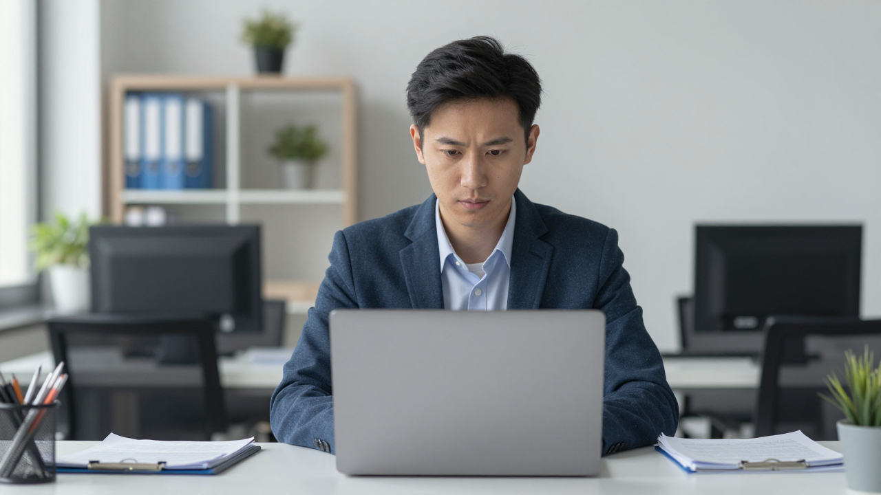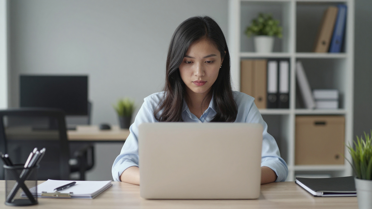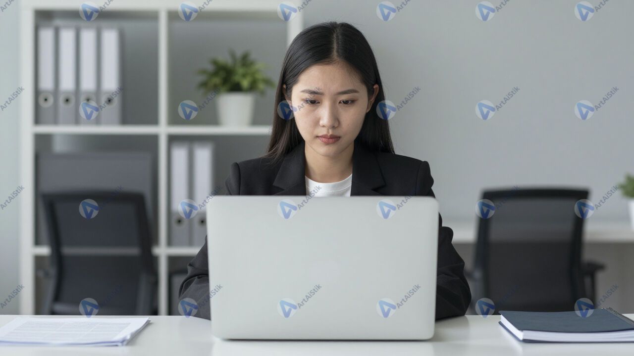 Портрет с ноутбуком, экран светит в лицо, офис.