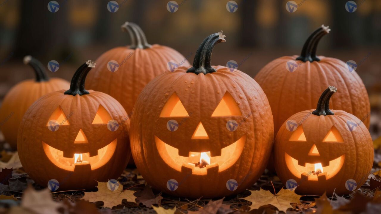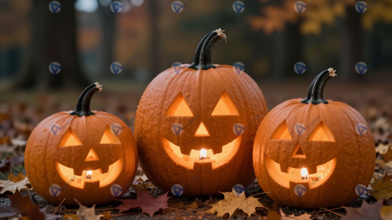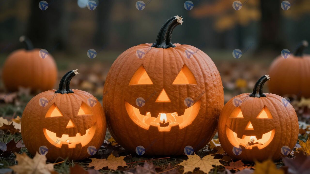 Тыквы и хеллоуин осенью, фонарь-тыква, вечер.