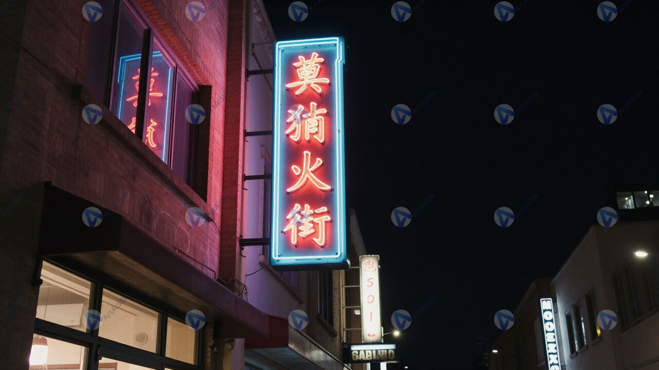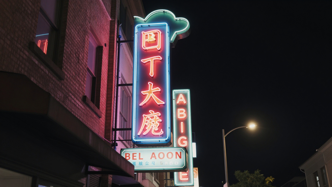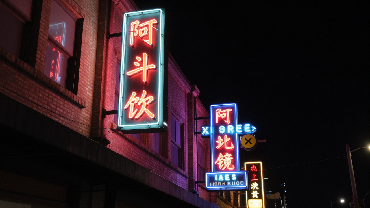 Вывески магазинов, неон, ночной город.