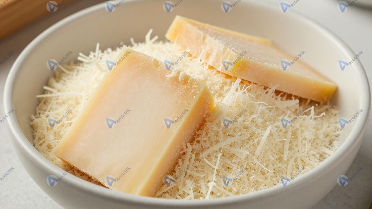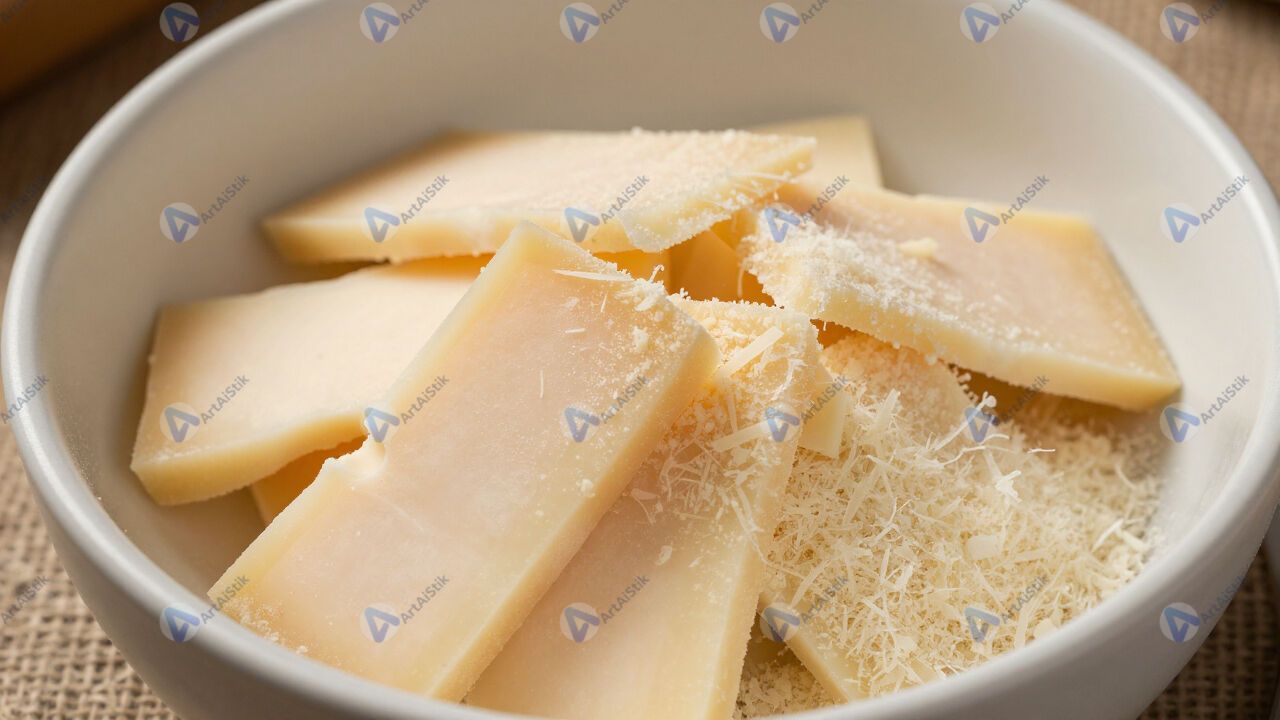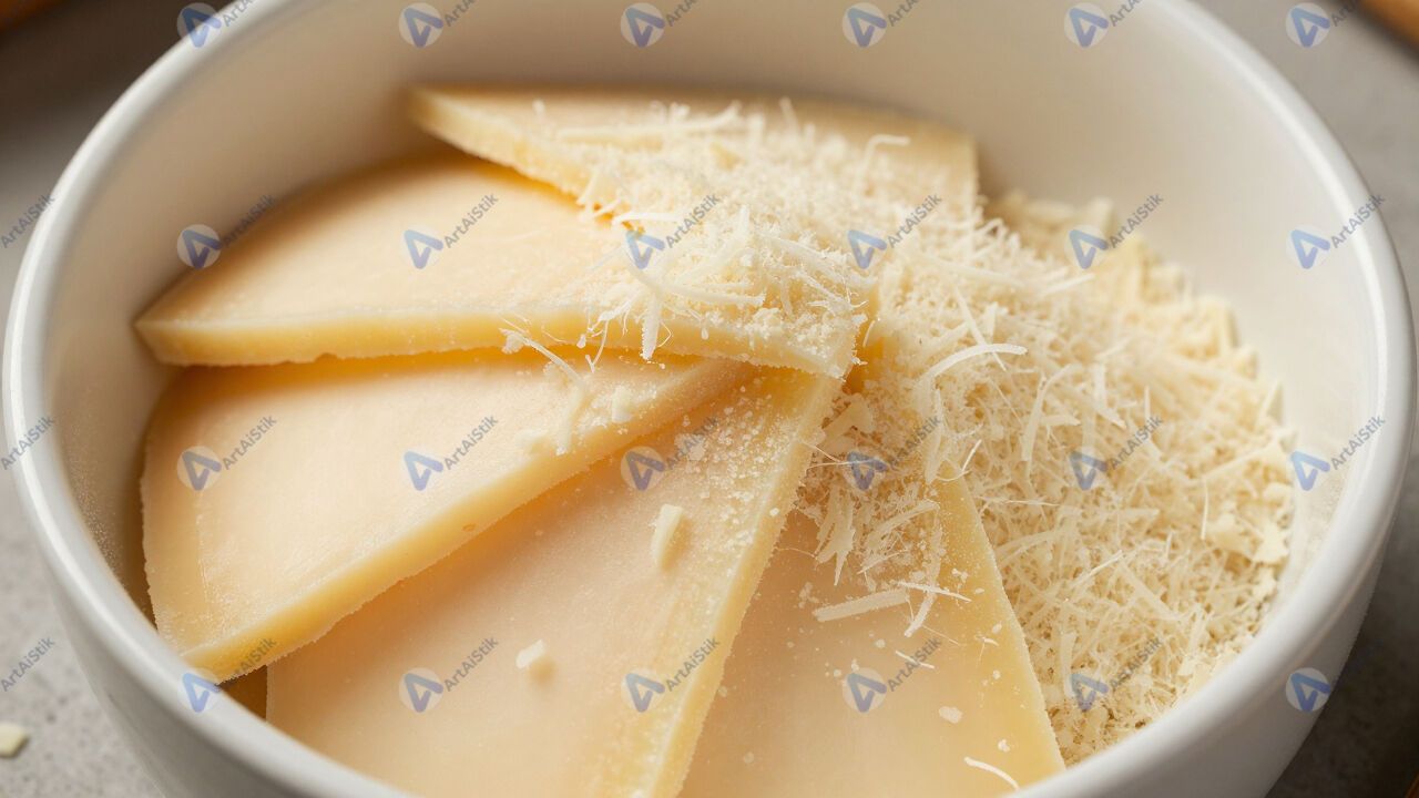 Сыр пармезан куском и натёртый в миске.