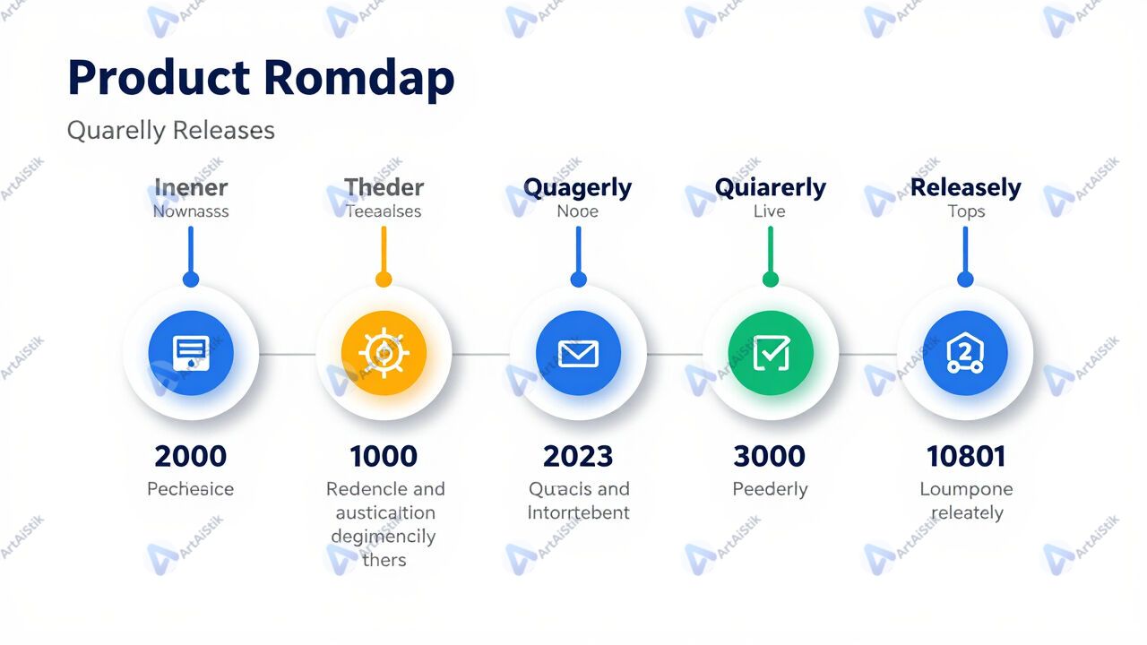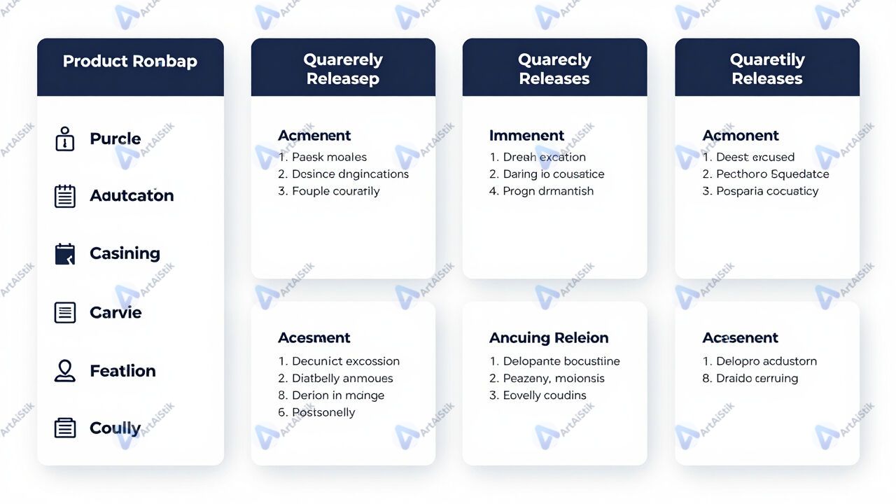 Слайд с дорожной картой продукта и релизами по кварталам.