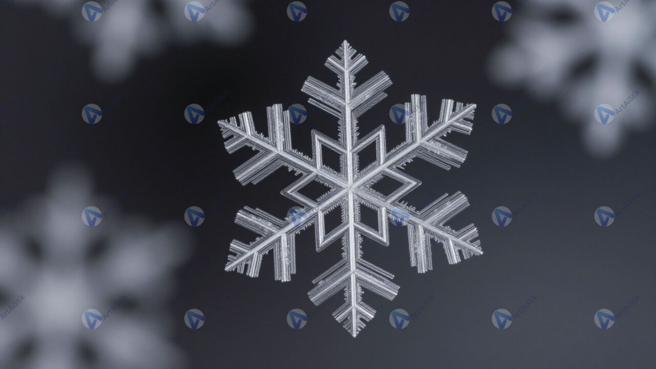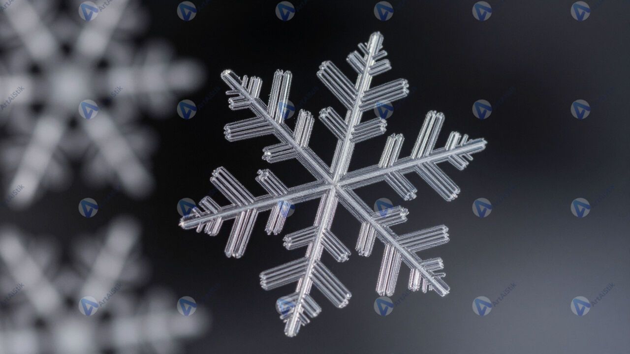 Снежинки зимой макро, кристаллы, тёмный фон.