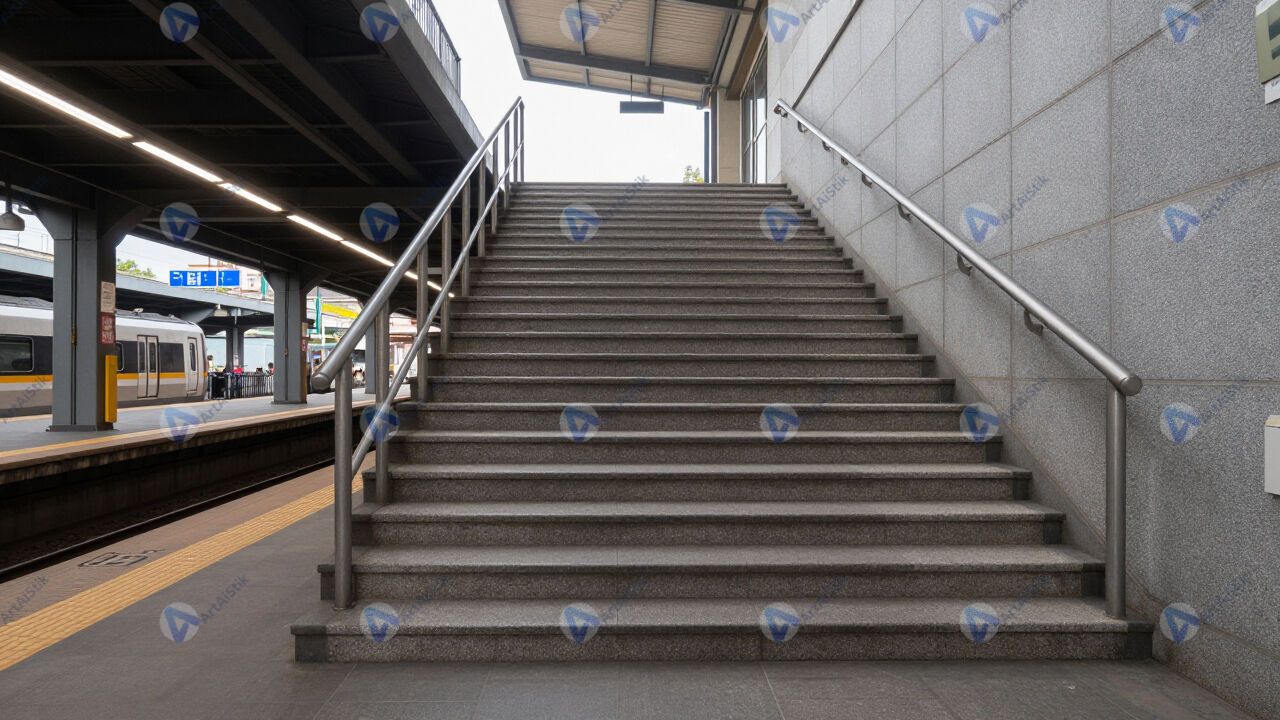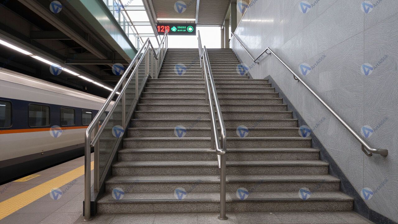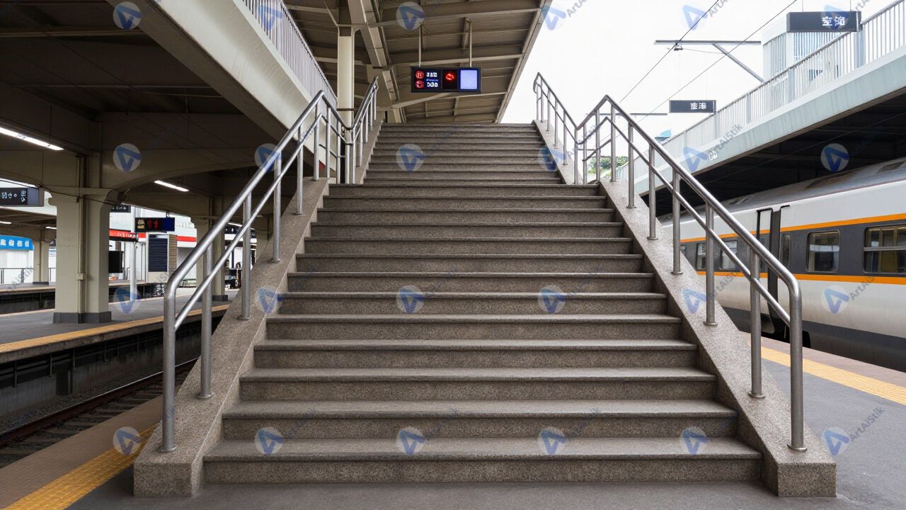Лестница к платформе электрички на пригородной станции.
