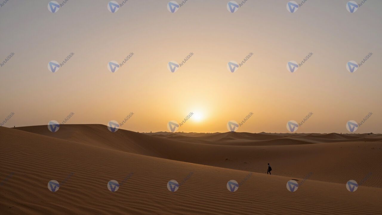 Закат в пустыне, песок и небо одного тона.