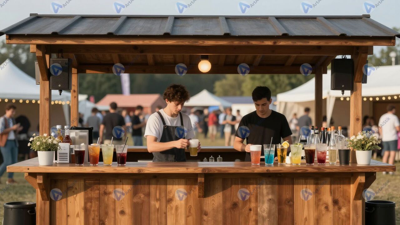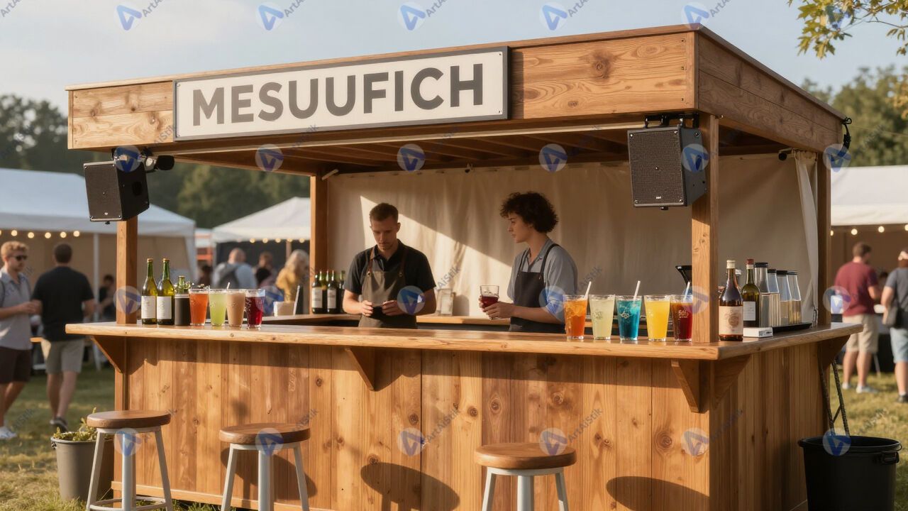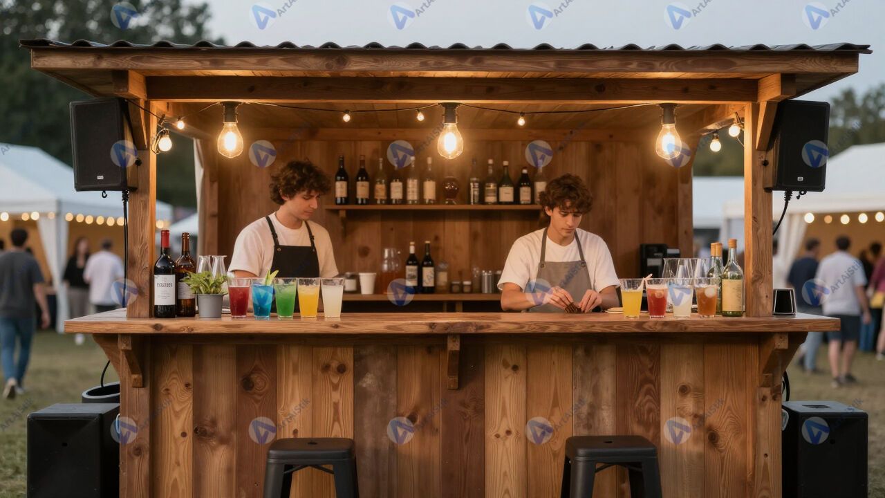 Стойка уличного бара с напитками на летнем фестивале.