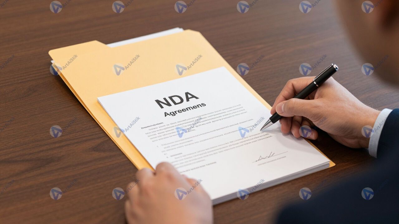 Папка с NDA‑соглашениями на столе переговорной.