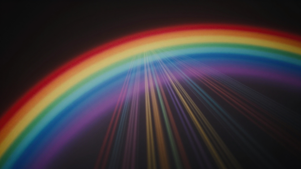 Радужный спектр линий от центра наружу, создаёт динамику.