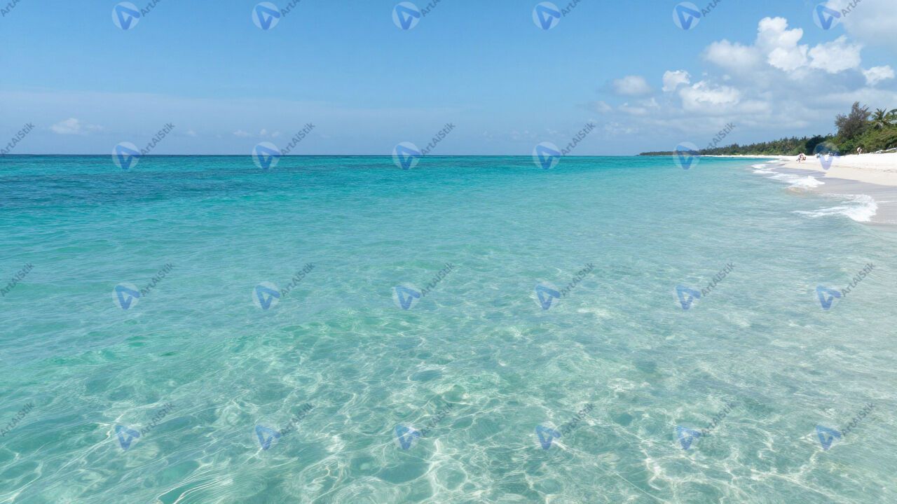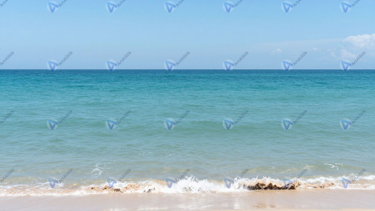 Море летом, бирюзовая вода, пляж без людей.