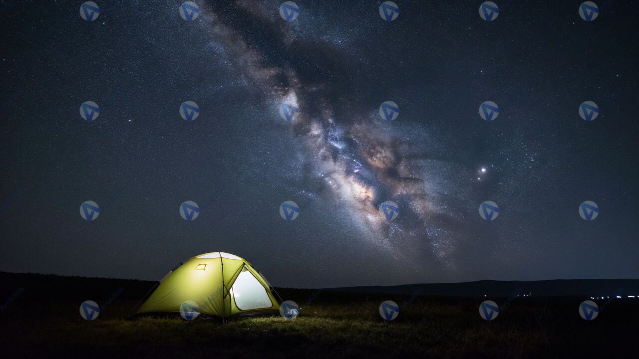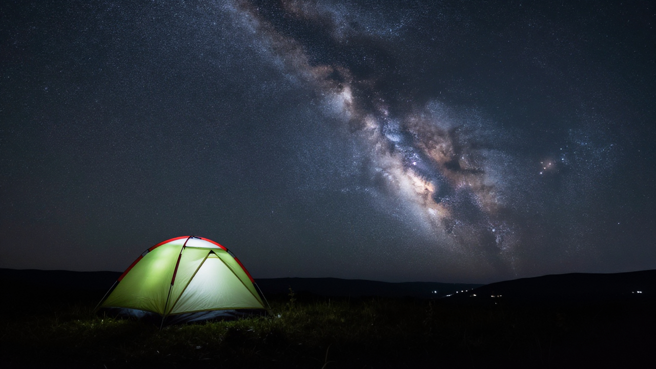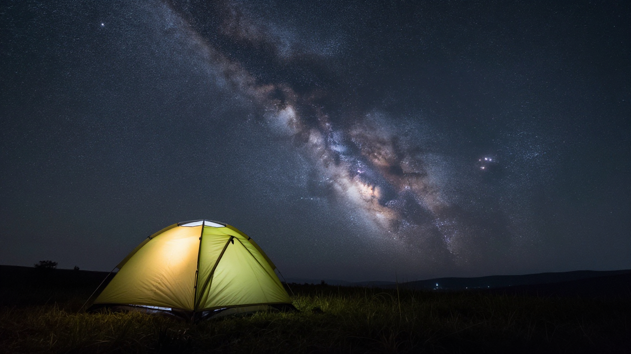 Звездное небо над палаткой, Млечный путь, длинная выдержка.