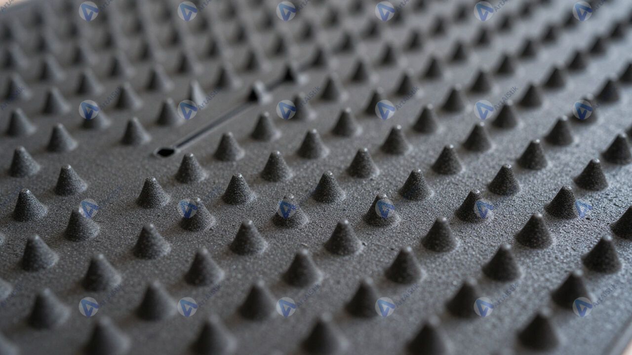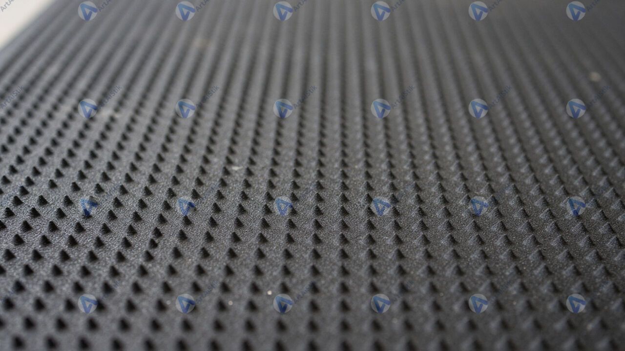 Поверхность резинового коврика с шипами.