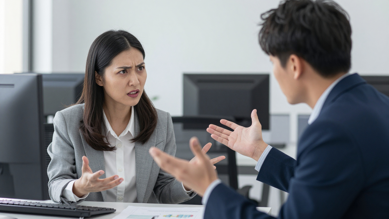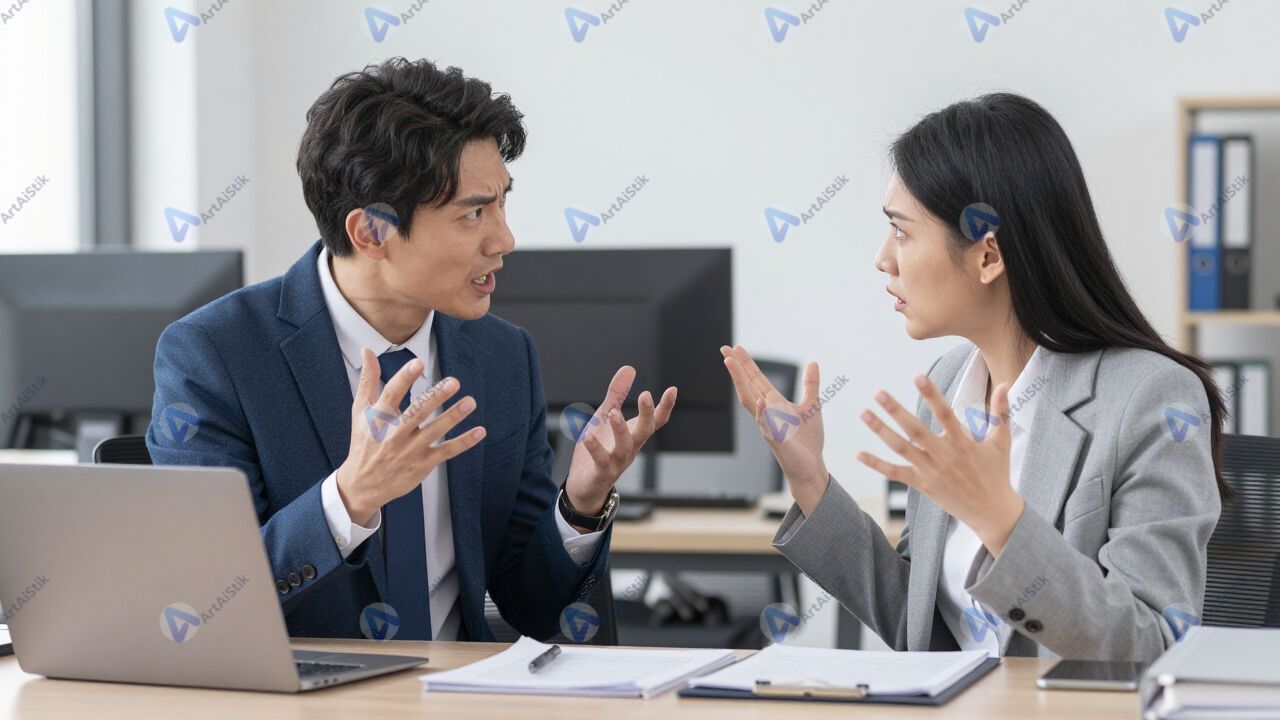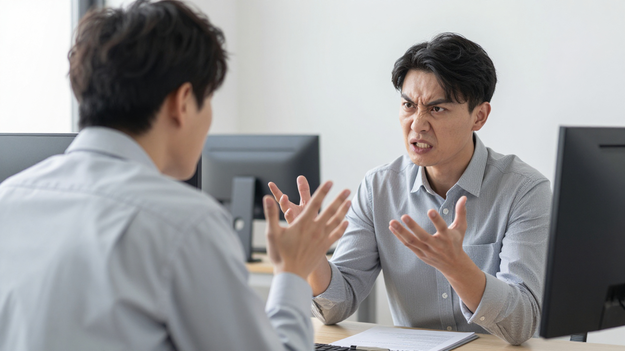 Спор двух людей, гнев, офис.