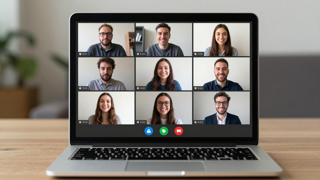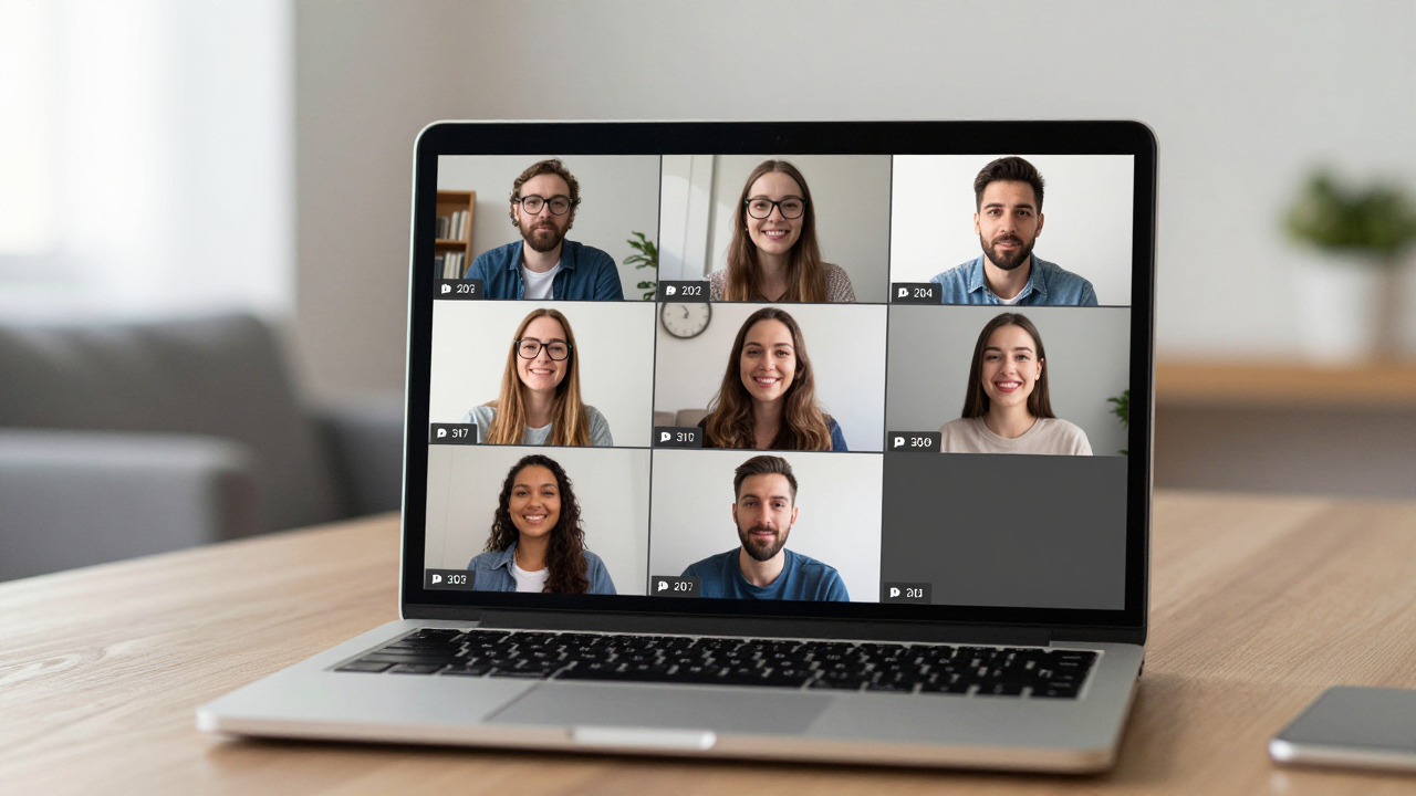 Видеозвонок на ноутбуке, собеседники в маленьких окошках.
